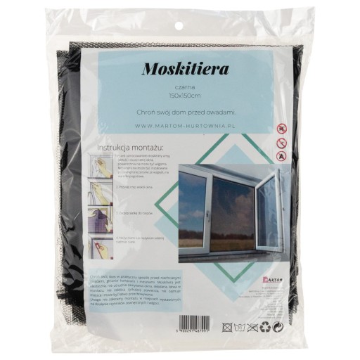 Czarna moskitiera, siatka na okno - 150x150 cm