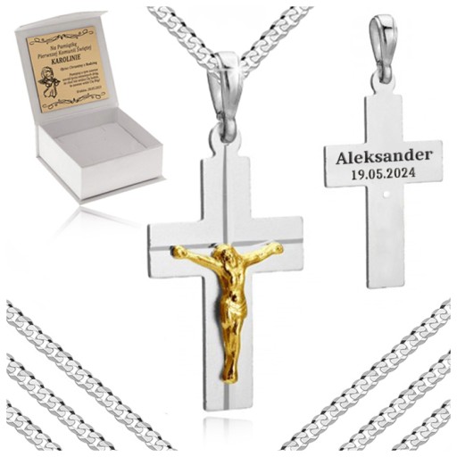 ➡️ SREBRNY ŁAŃCUSZEK PANCERKA + KRZYŻYK Z CHRYSTUSEM PR. 925 + GRAWER PREZENT