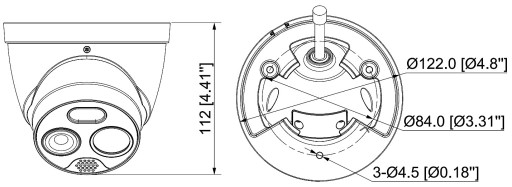 Przetwornik: Niechłodzony mikrobolometr VOx ; Wielkość matrycy: 256 x 192 px ; Kąt widzenia: 51 ° ; Rozdzielczość: 1280 x 960, 1024 x 768 px ; Przetwornik: 1/2.7 " ; Wielkość matrycy: 4 Mpx ; Kąt widzenia: 71 ° ; Rozdzielczość: 2336 x 1752 - 4 Mpx ; Interfejs RS-485; Wejścia / wyjścia alarmowe: 1 / 1 ; Audio: Wejście na mikrofon zewnętrzny ; Zasilanie: PoE (802.3af), 12 V DC ;