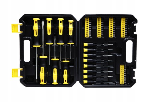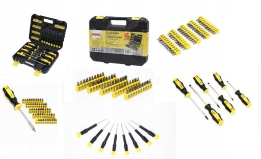 ✅ Walizka zawiera 65 wysokiej jakości elementów, w tym śrubokręty, wkrętaki precyzyjne i bity