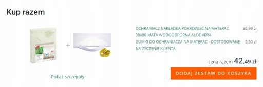 Jeżeli Państwa materac ma inną wysokość niż standardowe 17 cm prosimy w górnej części aukcji w sekcji Kup razem o dodanie do koszyka zestawu ochraniacza na materac z produktem GUMKI DO OCHRANIACZA NA MATERAC - DOSTOSOWANE NA ŻYCZENIE KLIENTA, oraz o podanie w wiadomości do sprzedającego wysokości Państwa materaca. Ochraniacz zostanie dostosowany aby idealnie pasował na Państwa materac.