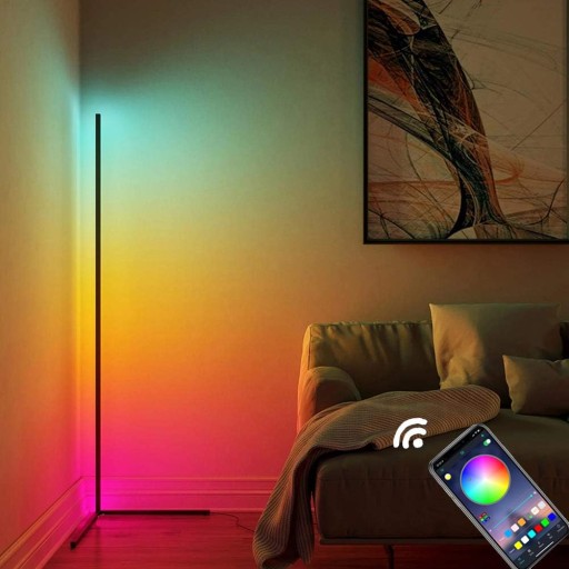NAROŻNA LAMPA PODŁOGOWA LED RGB 125cm STEROWANIE PILOT APLIKACJA CZARNA