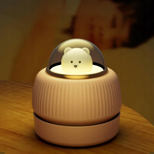 Lampka nocna: Ten odkurzacz biurkowy został zaprojektowany z funkcją lampki nocnej sterowanej długim naciśnięciem przycisku do włączania i wyłączania, kreatywnego, uroczego i kreskówkowego.