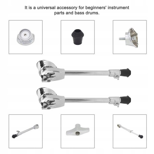 1. Noga bębna basowego jest chromowana, piękna i trwała. Jest to uniwersalne akcesorium do części instrumentów i bębnów basowych dla początkujących.