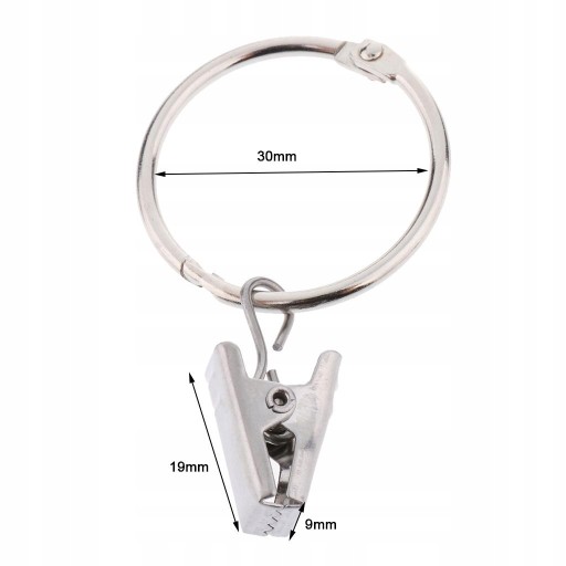 Wytrzymały hak przesuwny do zasłon, z klipsami, nierdzewny;