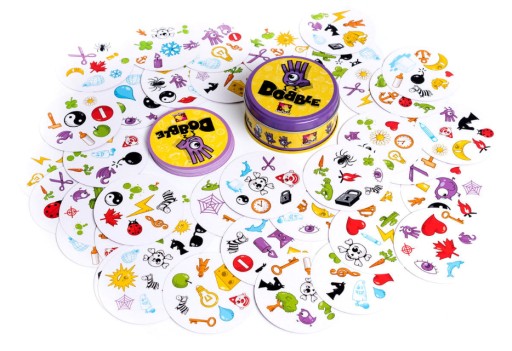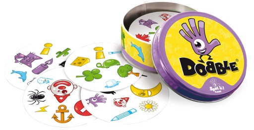 Spójrz na pierwszą kartę, którą trzymasz w ręku oraz na tę, która leży na środku stołu. Znajdź na nich wspólny symbol, nazwij go i szybko pozbądź się swojego kartonika. Teraz następny! Tylko nie zwątp, każda karta łączy się z inną zawsze tylko jednym symbolem! Dobble to rozrywka absolutnie dla każdego - gra nadaje się zarówno do zabawy z dziećmi, jak i na imprezy dorosłych. 55 kolorowych kart zamkniętych jest w solidnej, metalowej puszce, dzięki czemu łatwo zabrać Dobble ze sobą