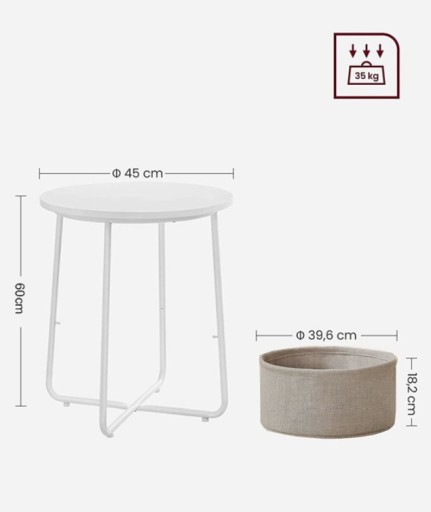⭐ STOLIK KAWOWY Z GAZETNIKIEM BIAŁY STÓŁ ŁAWA OKRĄGŁY Z KOSZEM 2w1 ⭐