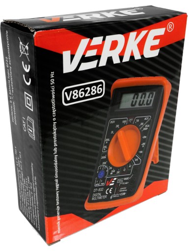 Multimetr cyfrowy Verke DT832 został zaprojektowany zgodnie z normą EN61010 i charakteryzuje się kategorią pomiarową (przepięciową) CAT I i drugą klasą ochronności. Ten przyrząd wykonuje pomiary napięcia stałego i przemiennego, natężenia prądu stałego, rezystancji, ciągłości (sygnał dźwiękowy), test diody i h FE (wzmocnienia stałoprądowego w układzie WE tranzystora). Miernik generuje testowy sygnał sinusoidalny lub prostokątny o częstotliwości 50 Hz i poziomie 5 V p-p