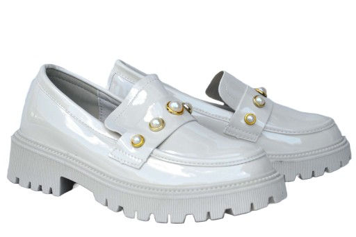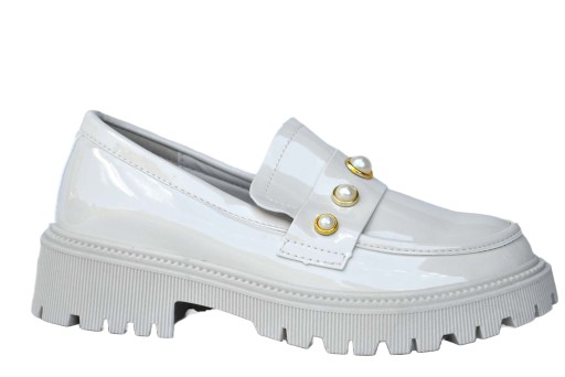 LAKIEROWANY MOKASYN PERŁA SKÓRA GRUBEJ PODESZWIE