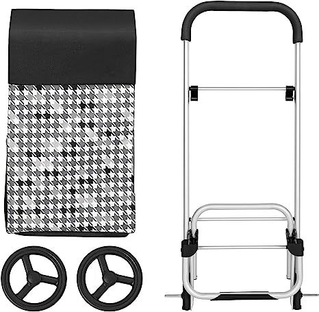 • Leży bezpiecznie w dłoni: brak ciężkich plastikowych torebek. Nawet Twój nadgarstek się obciąża. Wybierz ten wózek na zakupy z wytrzymałej tkaniny Oxford, która jest mocno połączona z ramą za pomocą zapięć na rzepy – nie musisz się martwić, że świeżo zakupione jajka spadną na ziemię