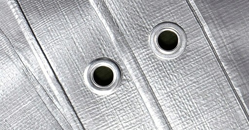 - Zakończona jest wzmacnianą podwójnie krawędzią ze sznurkiem polipropylenowym oraz posiada wprasowane aluminiowe oczka mocujące w odstępach co 1 m.