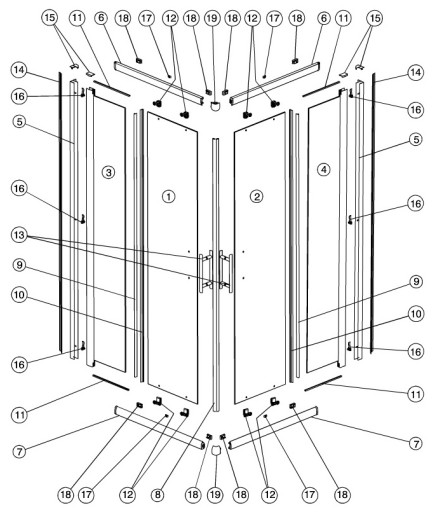 - Przeznaczone do: kabiny półokrągłej, kabiny kwadratowej