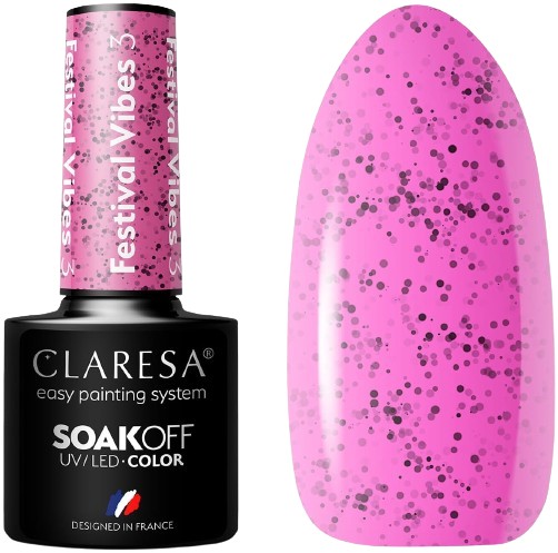 FESTIVAL VIBES 3 CLARESA ГИБРИДНЫЙ ЛАК ДЛЯ НОГТЕЙ Интенсивно-розовые и черные частицы