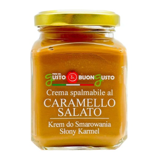 Wyśmienity krem do smarowania o smaku słonego karmelu. Wyprodukowany przez cukierników na Sycylii. Bardzo dobrze pasuje do pieczywa, naleśników, wafli, jogurtów. Idealny dodatek do ciast, tortów, babeczek, muffinek itp. Słoik tego produktu to 200 gram czystej sycylijskiej pyszności. Konsystencja kremu - leista. Nie zawiera oleju palmowego i konserwantów. Produkt bezglutenowy.
