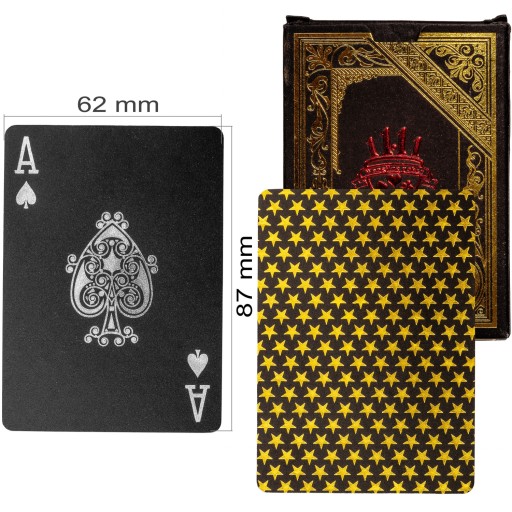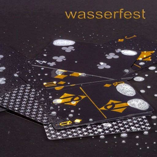 Karty do pokera / talia kart do blackjacka oraz innych gier z 52 kartami i dwoma jokerami Wariant: czarne złoto. Szczególnie wytrzymałe i trwałe, ponieważ są wykonane w 100% z tworzywa sztucznego - absolutnie odporne na rozdarcie