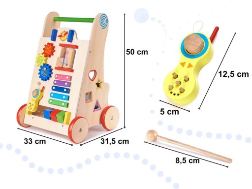 Pchacz chodzik drewniany kostka edukacyjna 6w1