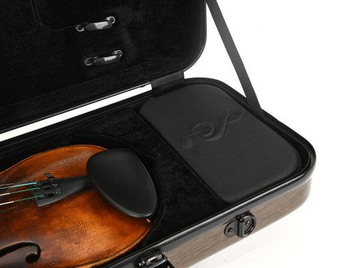Lekki, prostokątny futerał na skrzypce wykonany z kompozytu poliwęglanu i ABS.