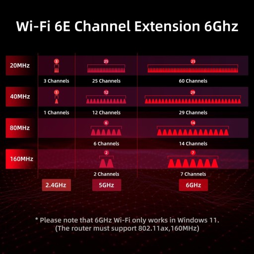 - 【WiFi 6E obsługuje 6 GHz】 Wbudowana karta sieci bezprzewodowej PCIe WiFi 6E w chipsecie AX210 zapewnia najnowszą technologię standardu 802.11ax. Docelowy czas wybudzania w porównaniu do 802.11ac zapewnia wyższe szczytowe szybkości transmisji danych od 80 MHz do 160 MHz, do 2400 Mb/s – 6 GHz; 2400Mbps-5GHz; 574 Mb/s-2,4 GHz i zwiększa pojemność nawet o 4 w gęstych lub zatłoczonych środowiskach. *Pamiętaj, że aby korzystać z Wi-Fi 6 GHz, użytkownicy muszą korzystać z systemu Windows 11 lub uaktualnić go do wersji deweloperskiej systemu Windows 10