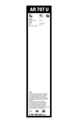 - Rodzaj wycieraczki: Pióro wycieraczki bezprzegubowe