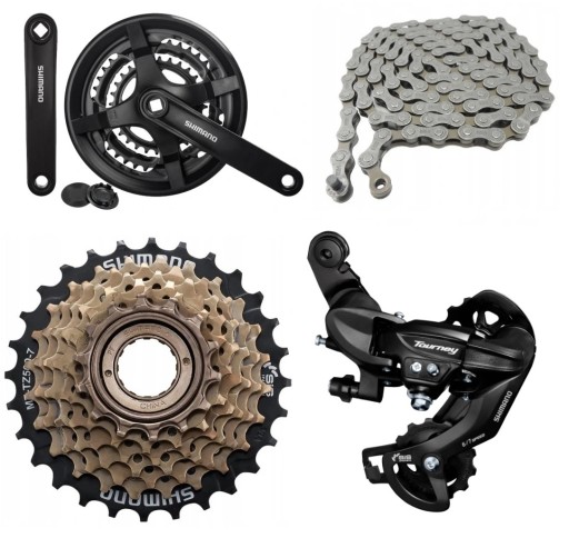КОМПЛЕКТ 7-СКОРОСТНОГО ПРИВОДА SHIMANO, РУКОЯТКА 42T, СВОБОДНАЯ СКОРОСТЬ, ПЕРЕКЛЮЧАТЕЛЬ, ЦЕПЬ 3x7