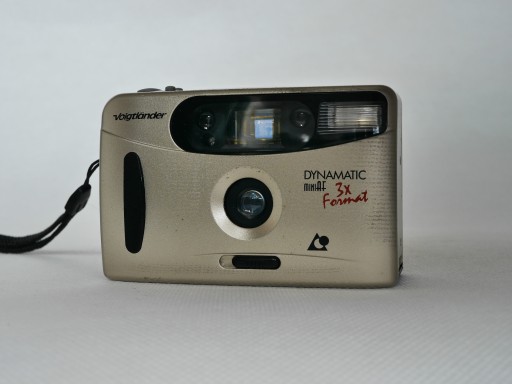 Kompaktowy Voigtlander Dynamatic mini AF. Po włożeniu baterii działa, nie sprawdzany z negatywem. Na półkę, do kolekcji lub sprawdzenia sprawności..