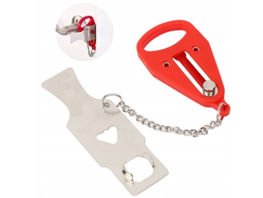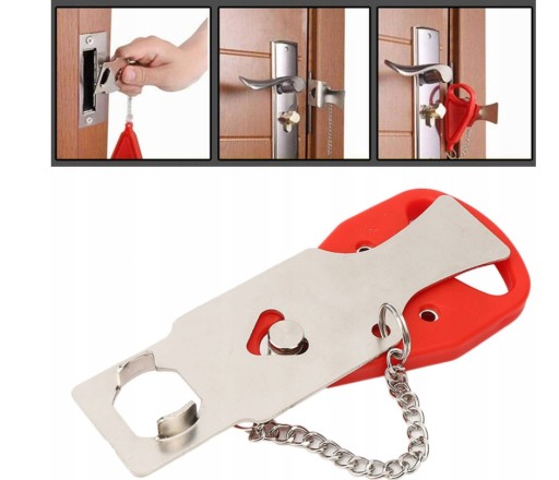 wystarczająco mały, aby zmieścić się w kieszeni lub torebce. Chociaż jest mały, może solidnie zamknąć drzwi i dodać dodatkowe zamki, aby zapewnić dodatkowe bezpieczeństwo i spokój ducha, szczególnie podczas podróży i pobytu w hotelach.
