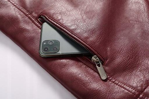 - Męska skórzana kurtka składa się z dwóch bocznych kieszeni, w które można łatwo włożyć ręce, dwie kieszenie na piersi mogą pomieścić twoje rzeczy, a dwie wewnętrzne kieszenie mogą służyć do przechowywania telefonu komórkowego, portfela i akcesoriów w nienaruszonym stanie.