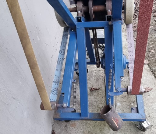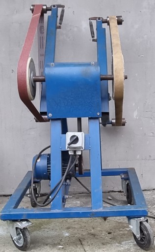Posiadam do sprzedania szlifierkę taśmową . Dwa pasy o długości 2,5m. Szybka wymiana , dowolna granulacja. Napęd dwukierunkowy umożliwia korzystanie z pasa szlifierskiego na filcu lub na bawełnie.