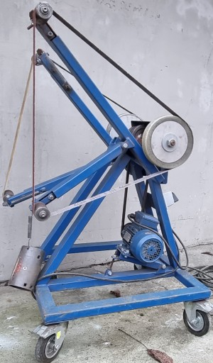 Szlifierka zaopatrzona w koła, w tym dwa z hamulcem , długi kabel zasilający. Umożliwia to szlifowanie w dowolnym miejscu. Silnik 400V. Na wale napędowym można nakręcać różne nasadki np. uchwyt wiertarski czy śrubę umożliwiającą nakręcenie dysku tak jak na szlifierkę kątową .W sprzedaży również polerki.
