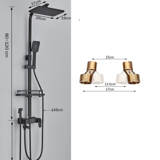 Prysznicowy zestaw czarnej baterii łazienkowej wyposażony jest w deszczownicę umieszczoną nad głową użytkownika. Woda wypływająca z kwadratowej deszczownicy przyjmuje formę dżdżu przyjemnie zraszającego głowę i ciało. Daje wrażenie masażu i pozwala na niesamowite doznania relaksacyjne