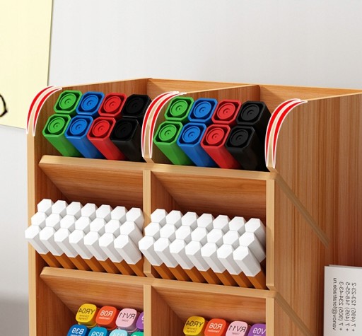Drewniany organizer na biurko to praktyczny i elegancki sposób na utrzymanie porządku na biurku. Składa się z kilku półek, szuflady i innych przegródek, które umożliwiają przechowywanie różnych przedmiotów, takich jak długopisy, ołówki, nożyczki czy klucze.