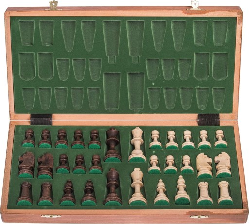 Szachownica wykonana rcznie metod intarsji z drewna mahoń jawor. Lakierowana na pópoysk rodek wypenia elegancka wkadka. Kaseta o wymiarach Po zoeniu 375 x 187 x 45 mm Pole 40 x 40 mm Figury toczone lakierowane podklejone filcem Staunton 4 Wysoko króla ok. 76 mm Ostrzeenie Do uytku pod bezporednim nadzorem osoby dorosej Ostrzeenie Nie nadaje si dla dzieci poniej 14 roku ycia. Do uytku pod nadzorem osoby dorosej