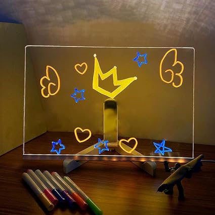 Odkryj nowy sposób bycia kreatywnym dzięki. Ta innowacyjna i wszechstronna podświetlana tablica do rysowania pełni funkcję zarówno praktycznej tablicy korkowej, jak i nastrojowej lampki nocnej, co czyni ją wspaniałym dodatkiem do każdego pokoju dziecięcego lub kącika do zabawy. Dzięki stylowemu i nowoczesnemu designowi oferuje unikalny sposób na pisanie wiadomości i rysowanie obrazków. Ponadto pełni funkcję ozdobnej lampki nocnej.