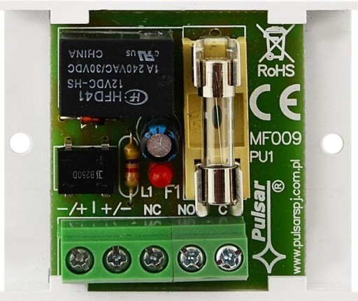 Pobór prądu: 33 mA @ 12 V DC Obciążalność styków: 1 A (max) 30 V DC / 50 V AC (max) Wyjście: 1 x NO/NC Wybrane cechy: Sygnalizacja LED Temperatura pracy: -10 °C ... 40 °C Waga: 0.02 kg Wymiary: 50 x 43 x 20 mm Producent / Marka: PULSAR Gwarancja: 2 lata