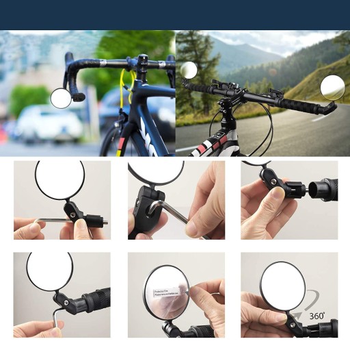 - Lusterko rowerowe ma pełny obrót o 360 stopni i może dostosować się do dowolnego kierunku, aby pomóc Ci patrzeć we wszystkich kierunkach. Lepiej dostosować się do wszystkich kierunków, aby obserwować wszystkie kierunki pleców, co zapewnia bezpieczniejszą jazdę.