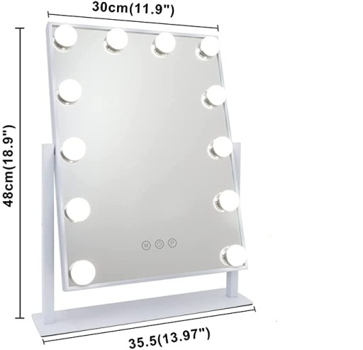 Fenchilin Illuminated Makeup Mirror is a popular light makeup mirror size in the market.11.81 inch width 16.14 inch mirror size, provides a large and bright view, helps you achieve flawless professional makeup.