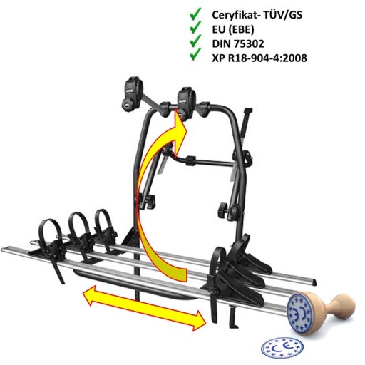 Kompaktowa, składana konstrukcja, umożliwiająca bezpieczną jazdę po zdjęciu rowerów bez konieczności demontażu bagażnika!