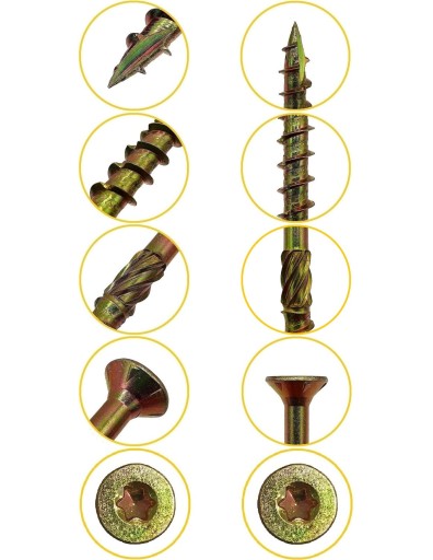 Wkręty ciesielskie dzięki innowacyjnej konstrukcji posiadają polepszone zdolności do wkręcania się, a tym samym znacząco usprawniają pracę przy montażu konstrukcji drewnianych.Wkręty te w pełni zastępują gwoździe budowlane i nie wymagają nawiercania. Głębokie gniazdo TORX pozwala na lepsze przeniesienie siły wkręcającej i zapobiega wyskakiwaniu bitu.