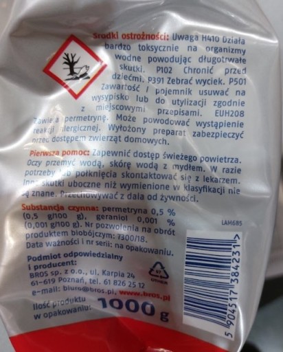 Proszek do posypania: wysypać ok. 10 g na gniazdo bądź ścieżki wędrówek owadów, skąd zostanie wniesiony do gniazda likwidując kolonię.