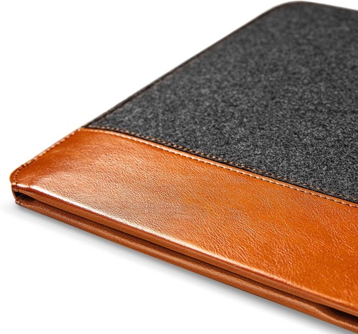 Klasyczne połączenie miękkiego filcu w kolorze węgla drzewnego i eleganckiej karmelowej skóry zaspokoi Twój gust estetyczny i zapewni stylową ochronę laptopa podczas codziennych obowiązków służbowych w podróży.