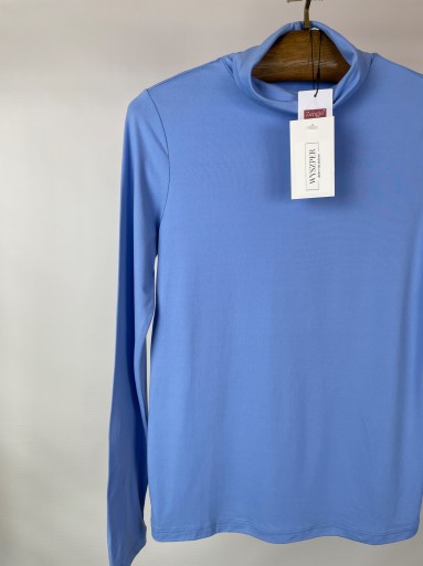 - Golf damski marki ZENGJO. Jest gładki, w pięknym niebieskim kolorze. Został wykonany z przyjemnego w dotyku materiału. Ma klasyczny, prosty krój oraz długie rękawy. Golfik jest wywijany. Kolorowy golf to must have każdej szafy.