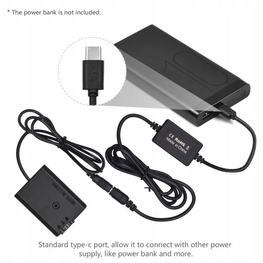 Kabel typu C umożliwia podłączenie do zasilacza PD 9V/12V i QC lub power banku (brak w zestawie).