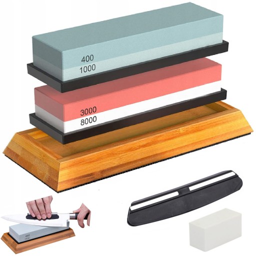 Kamienie umieszczone są na antypoślizgowej podstawce, którą tworzy podkładka z żelu krzemionkowego oraz bambusowy uchwyt. Dzięki temu nie musisz obawiać się o to, że podczas ostrzenia ostrzałka ześlizgnie się ze stołu.