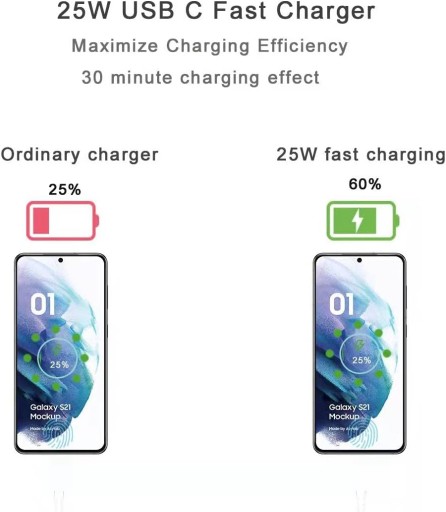 Kompaktowa i przenona konstrukcja niewielka waga i kompaktowy rozmiar 78 x 41 x 26 cm sprawiaj e adowarka USB C jest bardzo przenona atwa do przechowywania w kieszeni i mona j wszdzie ze sob zabra. Wtyczka do adowania z kablem USBC o dugoci 2 m w jednym zestawie jest bardzo praktyczna do uytku w domu w biurze w podróy lub w podróy. Szybka adowarka USB C 25 W adowarka USB C dostarcza maksymaln moc 25 W do smartfonów z super trybem szybkiego adowania. Naaduj Galaxy S21 Ultra od 0 do 58 w cigu zaledwie 30 minut. Kompatybilna z rónymi protokoami szybkiego adowania ta szybka adowarka PD 3.0 obsuguje równie technologie Quick Charge 4.0 3.0 2.0 Huawei FCP Samsung AFC PPS. W przypadku urzdzeń które nie obsuguj protokou QC lub PD protokó BC 1.2 5 V 15 A lub 5 V 1 A obsuguje standardowe adowanie. Pena kompatybilno zasilacz USB C 25 W jest idealnie kompatybilny z Galaxy S22 S21 S21 S21 FE S20 S20 Ultra S10 S10 S9 S8 Note 20 Note 10 Galaxy A53 A52s A51 A72 A71 A80 A90 Z. Flip 3 Z Folia. d3 Z Flip 4 Z Fold4 A11 A12 A13 A22 A31 A32 A33 M31 M32 M42 M53 5G Redmi Note 10 Note 9 Pro Xiaomi Poco F2 Pro Poco X2 Poco X3 Poco X3 Pro Pixel 6. 6 Pro 5 4 3 itd. Co otrzymasz 1 x adowarka USB C 25 W 1 x 2 m kabel USB C do USB C.