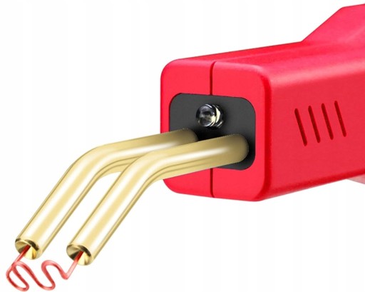 - Aby rozpocząć pracę z urządzeniem, należy zamontować wybrany grot. Po naciśnięciu spustu, grot zacznie się nagrzewać i po osiągnięciu odpowiedniej temperatury, można przystąpić do wtopienia go w uszkodzony plastik w celu wzmocnienia lub połączenia elementów.