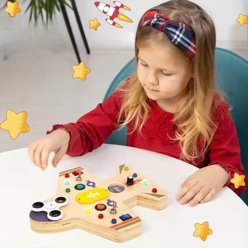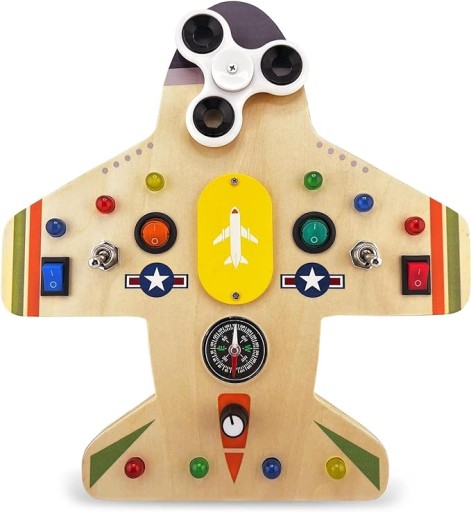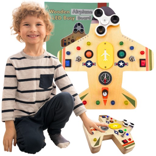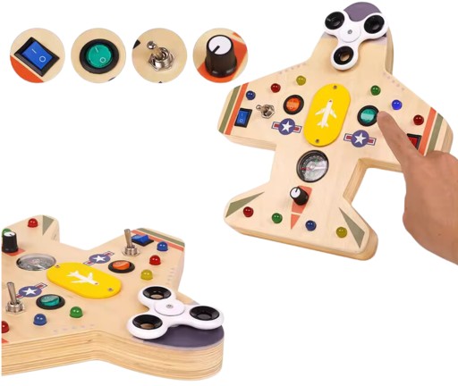 TABLICA MANIPULACYJNA DREWNIANA PANEL SENSORYCZNY KONTROLER LED SAMOLOT