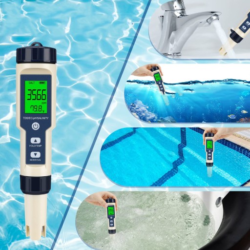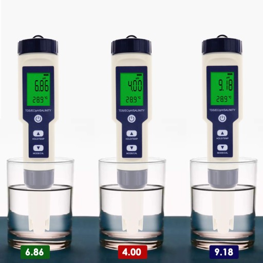 Jest to zestaw do testowania wody z pH-metrem, miernikiem TDS i funkcją pomiaru temperatury zawartości soli EC. Podświetlany wyświetlacz LCD ułatwia odczyt wyświetlanych wartości
