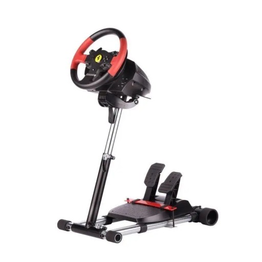 Product Description Tilt of the steering wheel column 360° STEPLESS adjustable - Quick release mechanism for rapid adjustment - New V2 design based on DELUXE line makes it sturdier, stronger and more rigid - Specially designed to support Thrustmaster and Logitech wheels - Adjustable for all sizes of players and for every chair and sofa - Ready to work out of the box - Handcrafted full metal construction for life-time durability and stability - High quality anti-sliding rubber feet prevent floor damage - Precision build for maximum rigidity and stability - Easy upgrade for other wheels This model is compatible with: Thrustmaster F458/F430/T80/T100 Safety Warning Set up and adjustments to be done by an adult, appropriate age for use without adult supervision is 14 years or older.