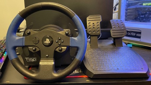 Product Description The T150 racing wheel, ThrustMaster’s absolute gold standard in the world of virtual motorsports, is a tremendous asset for all racing fans looking for enhanced immersion in their gaming sessions. The T150 ensures excellent precision and realistic sensations on the race track, thanks to ThrustMaster’s unique belt-pulley Force Feedback system. Responsive and adjustable, the T150 is a versatile ally for any type of racing: Rally, F1, NASCAR and even GT. The size of the wheel’s rim (11 inches/28 cm) is great for all hand sizes, and allows for easy, intuitive rotation (up to 1080°). Gear shifts are both smooth and distinct thanks to the 100% metal sequential paddle shifters, which provide optimal accuracy. Optical reading of the wheel’s movements (with 12-bit resolution) ensures authentic in-game mirroring of even the slightest moves made by the user. Works with PS5 games (PS5 games compatibility has been tested and endorsed by ThrustMaster. At stage of publication, PS5 compatibility of the full range have not been yet tested nor endorsed by Sony Interactive Entertainment LLC.) Safety Warning NO Box Contains 1 x Thrustmaster T150 Force Feedback Wheel