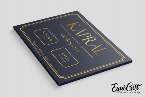 Przedmiotem sprzedaży jest granatowa, personalizowana tabliczka na boks o wymiarach 35cm x 22cm